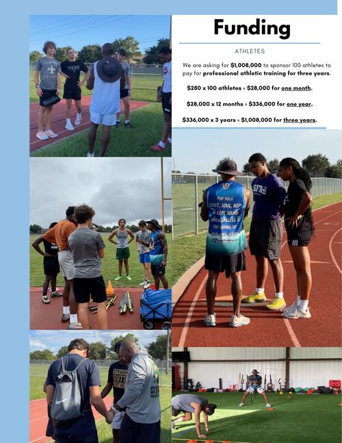 There are many student athletes in the Dallas area who cannot afford training but are in need of sports education and discipleship. Your donation will provide student athletes with free professional athletic training and sports education.