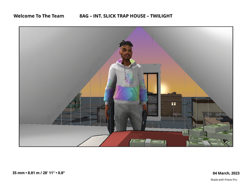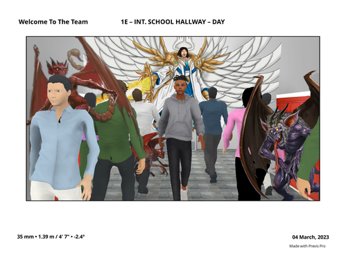 The Storyboard is an early rough draft of the first episode. Its purpose is to help cast the vision and set a foundation for the animatics. After the animatics we will then begin modeling, layout, animation, vfx and etc to complete the project. Only 5% of the characters that you see in the storyboard will actually be used in the final version. The Storyboard was made in PreVis Pro App.